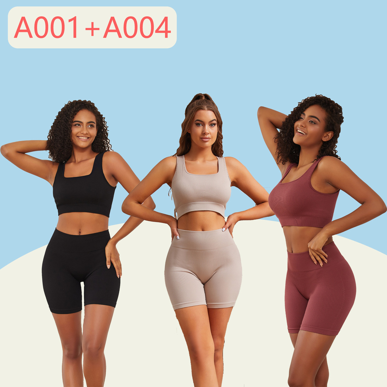 Спортивний топ із щільного еластичного матеріалу в рубчик із широкою гумкою та широкими бретелями. Є поролоновий зйомний вкладиш. Можна комбінувати з велосипедами А004, А005, НА004, НА005.