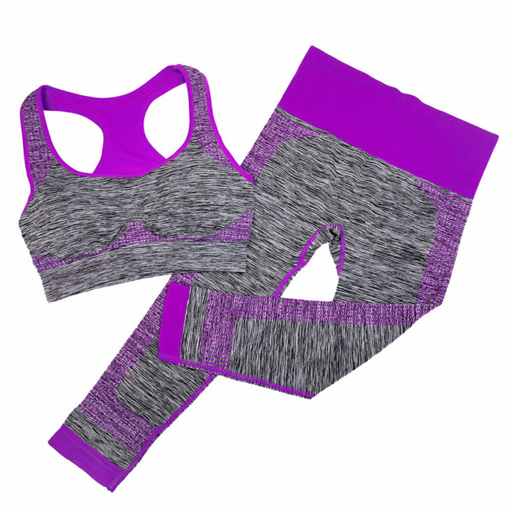 Двоколірний еластичний комплект для спорту та фітнесу, що складається з топу з поролоновими вкладишами та легінсів із широкою гумкою в поясі.